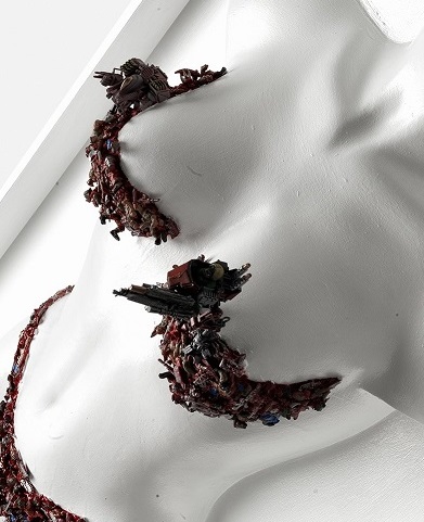 He creates scenes using toys and miniatures, combining this with a graffiti aesthetic to produce reliefs, dioramas and single sculptural pieces.
